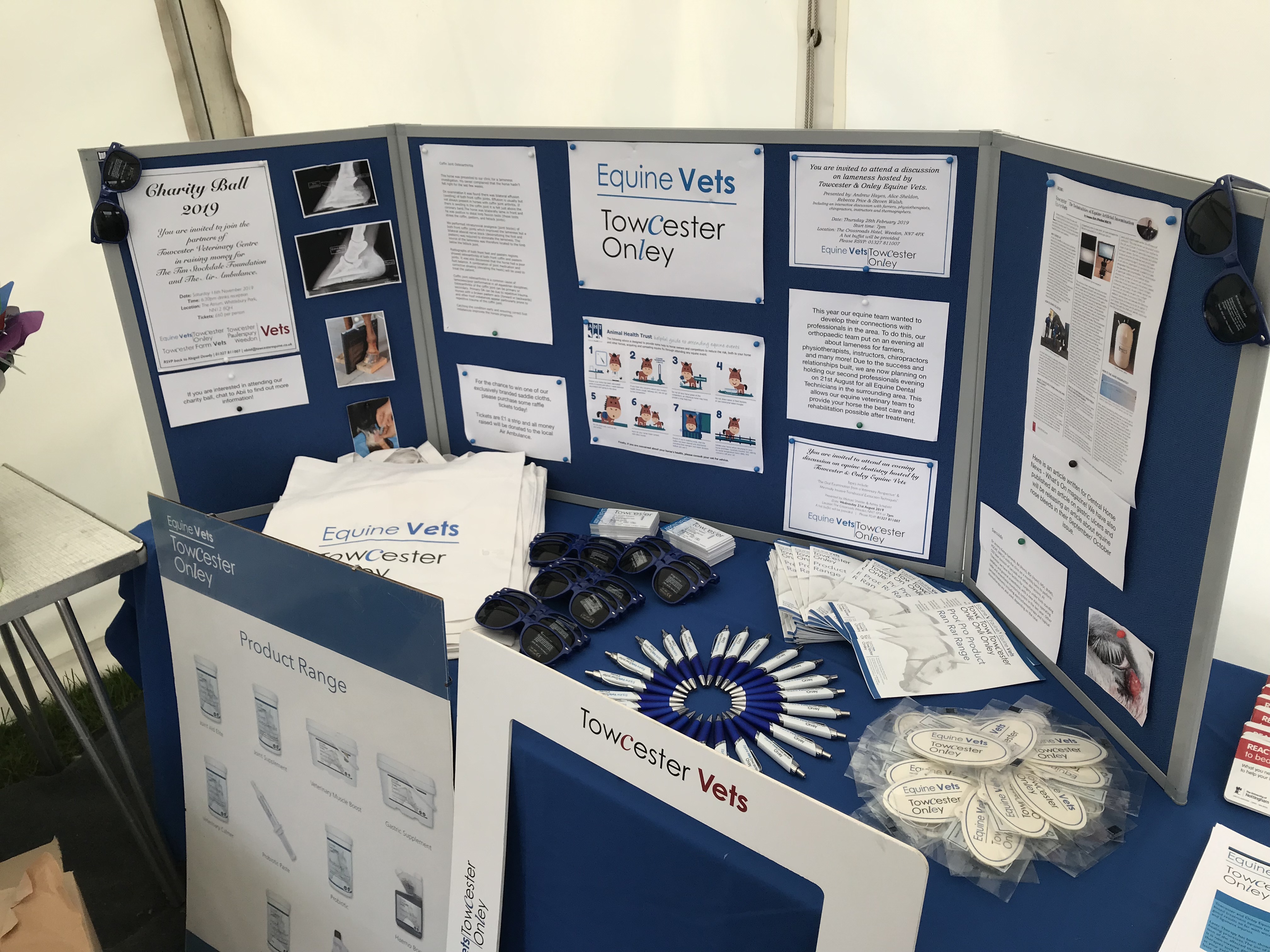 The Towcester & Onley Equine Vets stand inside our TVC marquee.